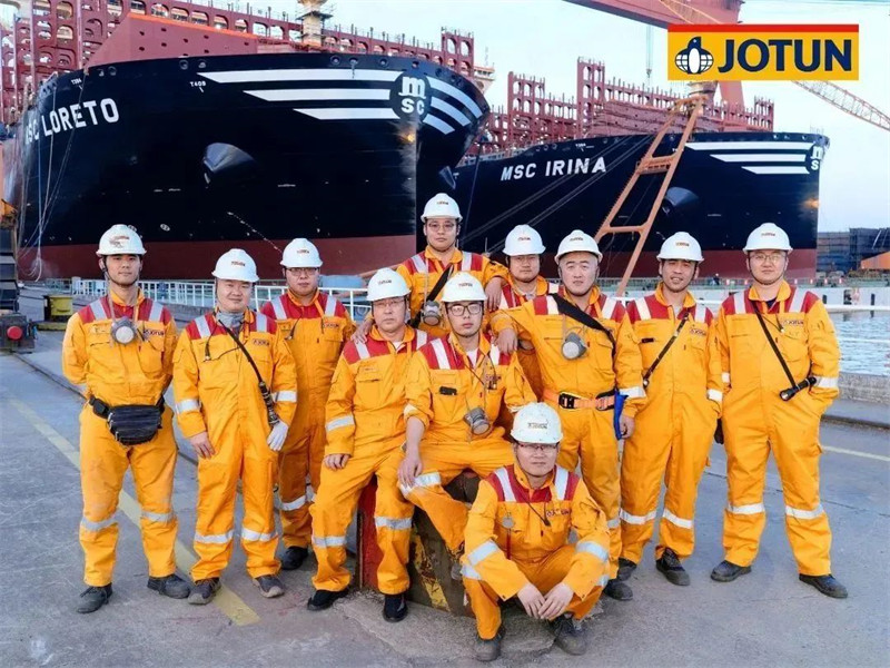 因船型巨大,佐敦為該系列船型派駐了多支由高級技術(shù)服務(wù)領(lǐng)頭的檢驗小組,HPS防污漆統(tǒng)噴時,有多達6名佐敦涂裝顧問在現(xiàn)場提供技術(shù)服務(wù)。